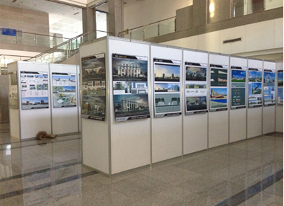 目前,新校区的总体规划设计和一期八项单体建筑设计已基本完成,考虑到校门及围墙的形象应与整个校园主体建筑的风格和谐统一,现将新校区总平面图和各个建筑单体的效果图在综合楼一楼大厅一并展示出来,以便师生在评选作品时对新校区的设计风格有所了解,评选出最适合新校区的最优方案。