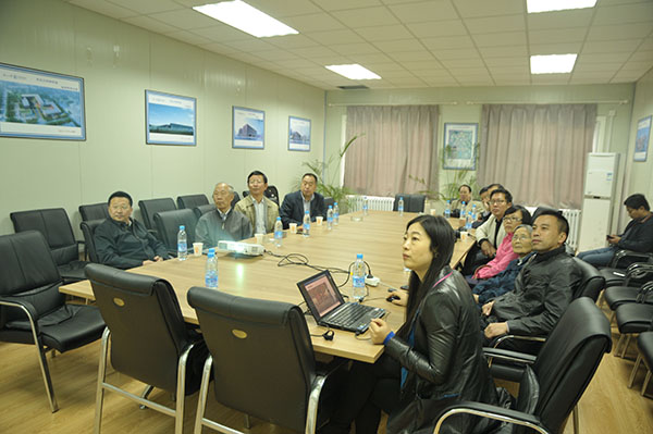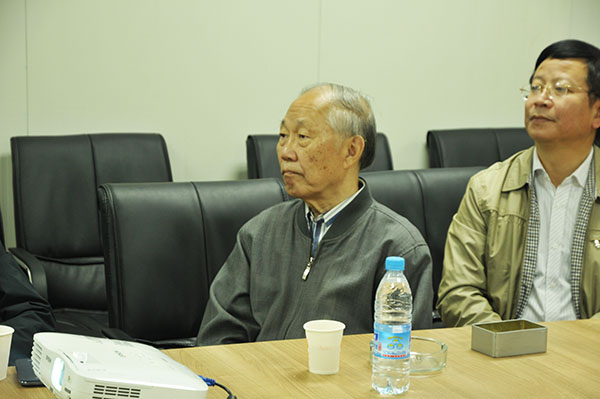 基建处相关工作负责人向老领导详细介绍了浑南校区的建设情况,特别是前期征地、总体规划、单体建筑设计和施工管理等,并向老领导表示崇高敬意。