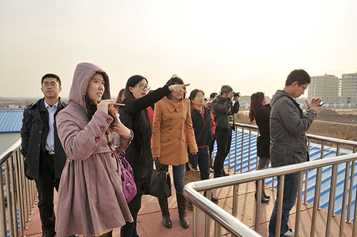 会议结束后,大家纷纷登上瞭望台,登高远望各工程的施工进展情况。