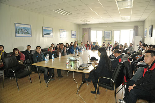 在听取介绍后,大家纷纷表达了对新校区建设的关注与期盼,同时对在艰苦环境下工作的新校区建设者们表示亲切的慰问。并考虑到天气逐渐转冷,为我们送来了暖贴,对于在寒冷气候中仍要工作在施工现场的人员,犹如雪中送炭,令人倍感温暖。
