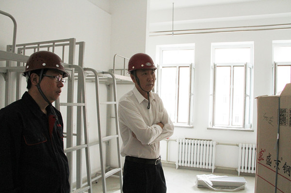 孙家学依次视察了东校门、学生宿舍、学生食堂、学生生活服务中心、文科1楼等项目的施工现场。在学生生活服务中心施工现场,孙家学听取了工程建设进展情况的汇报,认真查看了建筑外墙材料并进入学生生活服务中心内部查看建筑结构和施工质量。