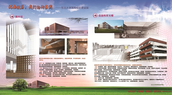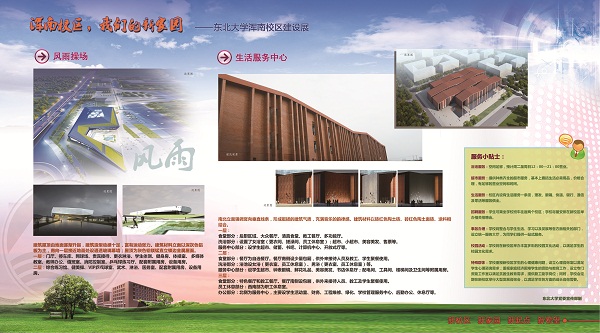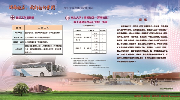 9月9日,由东北大学党委宣传部策划制作的“浑南校区,我们的新家园——东北大学浑南校区建设展”在主楼一楼大厅、何世礼教学馆展出。8块展板图文并茂,系统全面地展示了浑南校区建设的总体规划、建设历程、建设现状及周边配套、班车安排等内容。