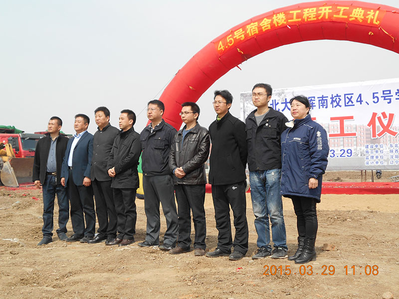 东北大学浑南新校区4、5号学生宿舍工程开工仪式于2015年3月29日上午隆重举行。仪式现场气氛热烈,音乐声雄壮激昂,欢呼声热情洋溢。基建管理处副处长余祖国及相关工作人员参加了庆典仪式,同时参加的还有沈阳市工程监理咨询有限公司的代表及陕西建工集团总公司的代表。