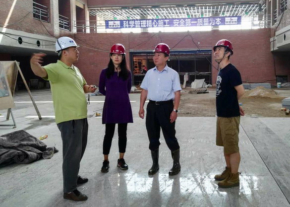 赵继深入施工现场,仔细查看并询问了4号、5号学生宿舍、图书馆、景观工程等重点工程的建设情况和工程进展情况。赵继对暑假期间紧锣密鼓的基建工作给予了充分的肯定,并亲切地嘱咐基建工作者要注意身体,对基建工作提出了具体的要求和指导。