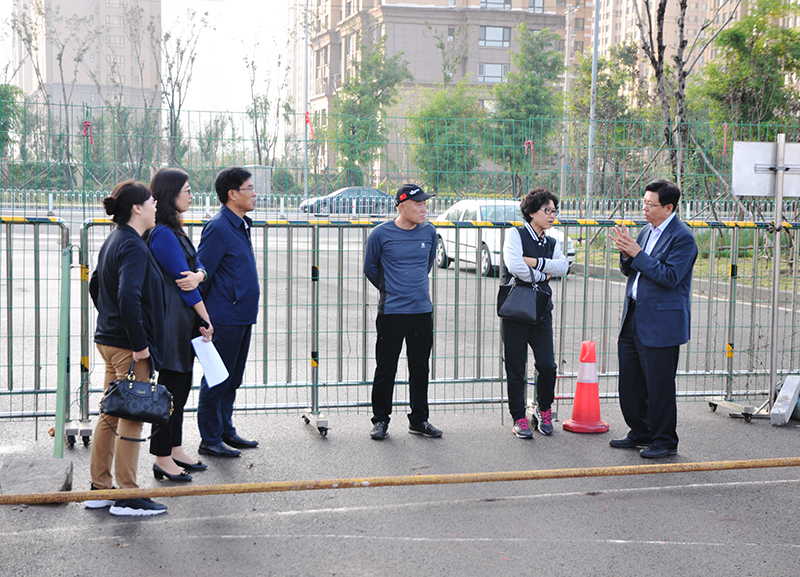 随后一行人驱车前往校门外,从校外远观模型,进一步论证设计方案。