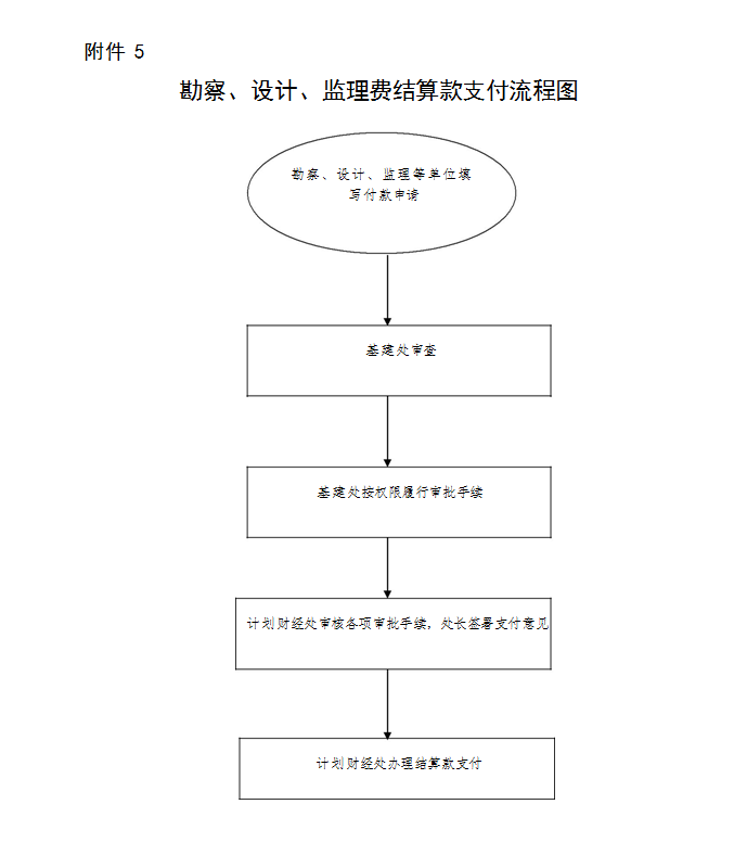 (四)基建处通知勘察、设计、监理等单位本次付款金额,勘察、设计、监理等单位在规定时间内到计划财经处办理取款手续。