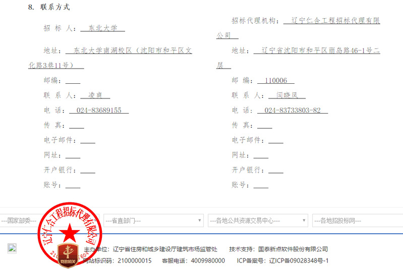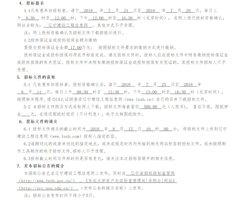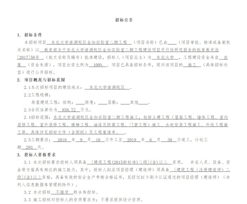 东北大学浑南校区1号公共教学楼项目施工进行公开招标
