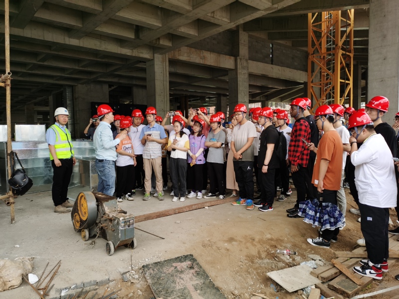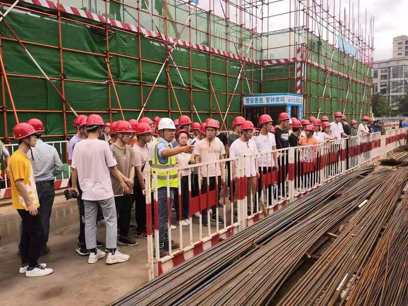 学生到达施工现场后,首先由现场安全员对学生进行安全教育,指导学生穿戴安全防护用品,施工负责人对项目概况、施工部署及专项施工方案进行介绍,基建管理处负责同志有序引导专业教师和学生参观施工现场,向学生全面详细介绍现场施工程序和注意事项,对正在进行的施工工艺进行观摩讲解,解答学生提出的各项问题。通过现场学习,同学们纷纷表示,现场实践效果明显,学习了很多书本上学不到的知识,科学严格的保障制度和严谨细致的工作计划,将有效推动建筑产品的高质量完成。这种身临其境的学习,对于指导今后的理论学习和实践工作都具有重要意义。