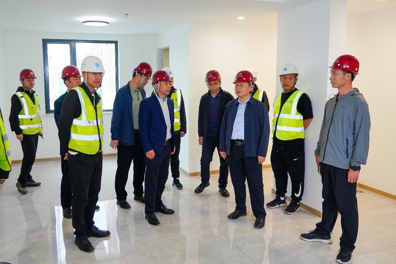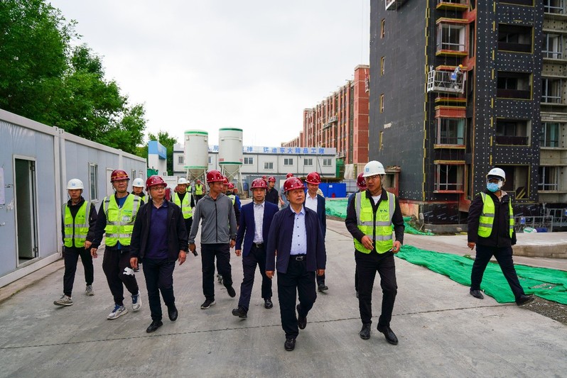 王辉一行走进6号学生宿舍和人才公寓施工工地,实地查看样板间施工进展及装修工程等各方面情况,听取了施工单位负责人关于项目施工进度汇报,详细了解各施工重点环节,检查施工安全和工程质量,现场研究解决项目推进过程中遇到的问题和困难,并就如何做好下一步工作提出具体指导意见。