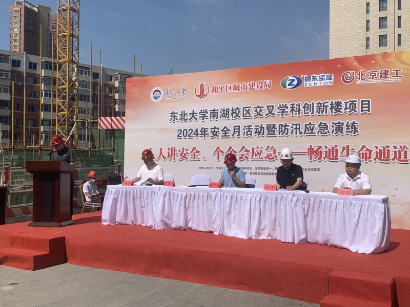 为全面开展东北大学2024年防汛工作,进一步提高应对安全生产和自然灾害事故应急抢险的组织调度和处置能力,6月21日上午,基建管理处在南湖校区交叉学科创新楼项目开展了2024年安全生产月活动暨防汛应急演练。和平区安全生产监督管理站、东北大学安全管理委员会、东北大学基建管理处等相关单位人员参与演练。