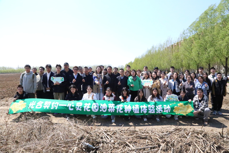 活动现场,春阳和煦,师生手持工具,躬身沃土,携手播撒春种。挥汗如雨间,圆满完成了油菜花种植目标,春日播种盛夏绽放的油菜花田,是师生同心共建的育人成果。